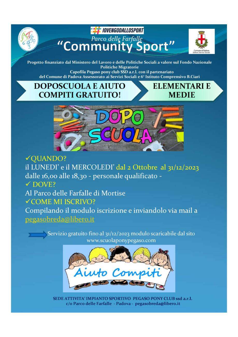 A partire dal 2 ottobre, sarà possibile usufruire del servizio Doposcuola gratuito del Progetto “Community Sport”