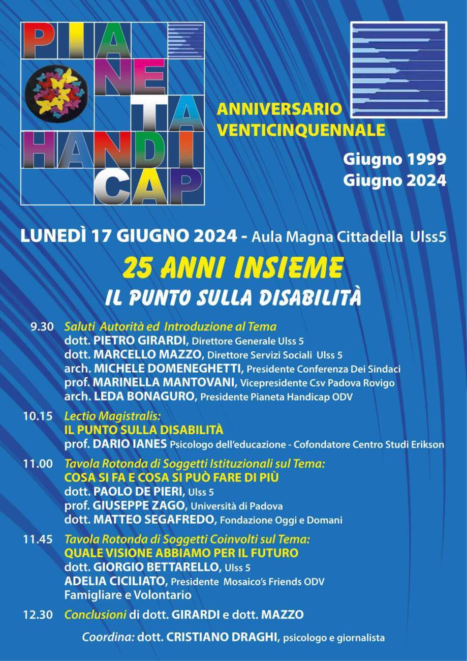L’Associazione Pianeta Handicap ODV organizza alcune iniziative per celebrare i suoi venticinque anni di attività