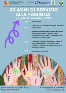 Sabato 11 novembre si terrà il convegno “30 anni di servizio alla famiglia”, organizzato dal Centro per la formazione e la consulenza della coppia e della famiglia Odv