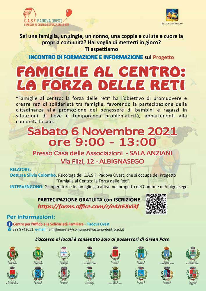 L’incontro si terrà Sabato 6 Novembre 2021 dalle ore 9.00 alle ore 13.00 presso la Casa delle Associazioni – Sala Anziani – Via Filzi, 12 ALBIGNASEGO.