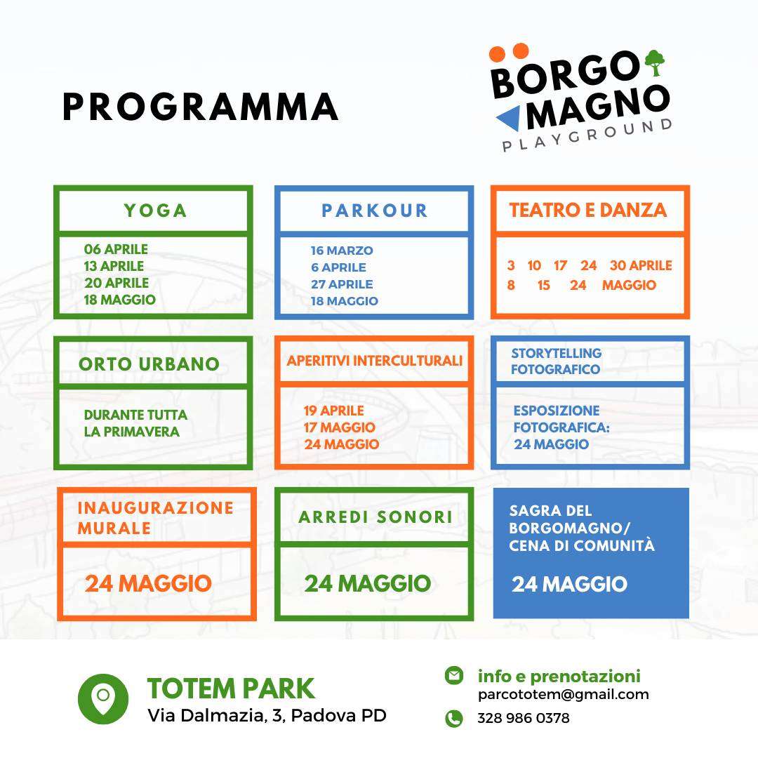 Tante attività gratuite e aperte alla cittadinanza all’insegna dell’intercultura e della natura per valorizzare i luoghi del quartiere e le diverse comunità che li abitano e che culmineranno nella Sagra del Borgomagno il 24 maggio 2024!