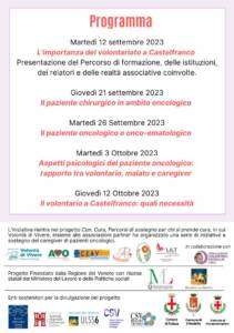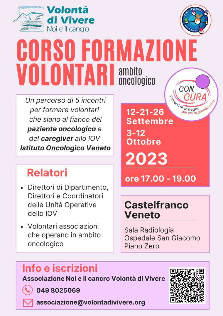 Da mercoledì 12 Settembre prende il via un percorso di 5 incontri per formare volontari in grado di affiancare pazienti oncologici e familiari presso lo IOV – Istituto Oncologico Veneto, sede di Castelfranco.