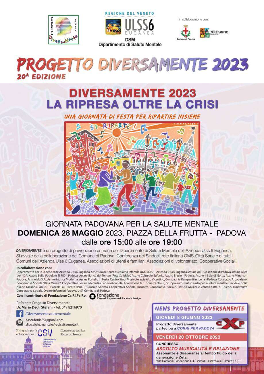 Diversamente è un progetto di prevenzione primaria del Dipartimento di Salute Mentale dell’Azienda Ulss 6 Euganea. Si avvale della collaborazione del Comune di Padova, Conferenza dei Sindaci, rete italiana OMS-Città Sane e di tutti i Comuni dell’Azienda Ulss 6 Euganea, Associazioni di utenti e familiari, Associazioni di volontariato, Cooperative Sociali.