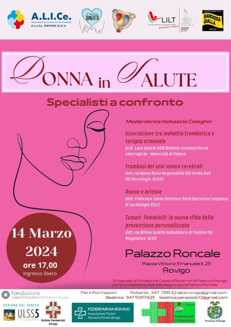 Il convegno “Donna in salute” si terrà giovedì 14 marzo, alle ore 17.00, presso il Palazzo Roncale, a Rovigo.