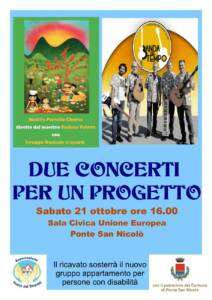 Per condividere l’inizio del progetto con la cittadinanza, è stato organizzato un pomeriggio di musica che si terrà sabato 21 ottobre, dalle ore 16.00 in Sala Civica Unione Europea di Ponte San Nicolò.