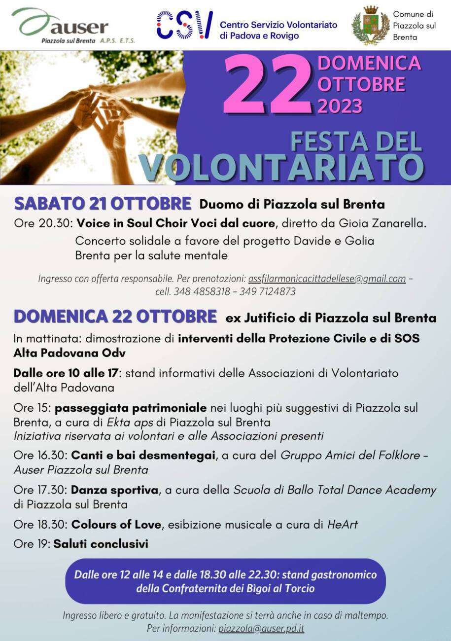 Domenica 22 ottobre a Piazzola sul Brenta si terrà la Festa del volontariato