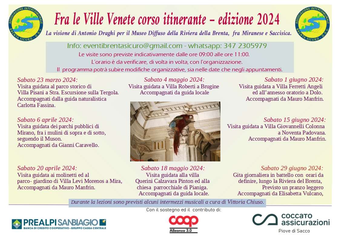 In seguito al successo dell’edizione del 2023, l’Associazione La Brenta Sicura ha deciso di riproporre il corso itinerante “Fra le Ville Venete”
