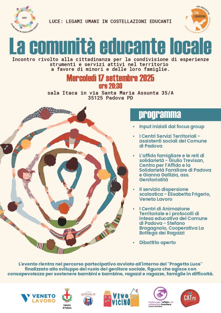 Nel quartiere di Brusegana, a Padova, sta prendendo forma un innovativo percorso partecipativo dedicato a chi, come genitore, cittadino o abitante, desidera mettersi in gioco per costruire una comunità più attenta e accogliente nei confronti dei bambini, dei ragazzi e delle famiglie in difficoltà. Il percorso, intitolato “Genitorialità sociale”, nasce dalla spinta di un gruppo di famiglie e singoli abitanti che, durante gli appuntamenti del progetto LUCE – Legami Umani in Costellazioni Educanti, hanno espresso con forza il bisogno di momenti di informazione, formazione e confronto sulle pratiche di accoglienza e accompagnamento di minori in situazioni di povertà educativa e vulnerabilità sociale.
