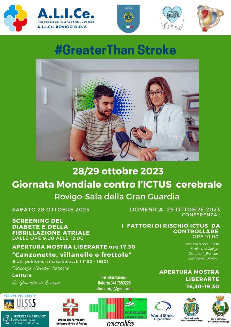 Il 28 e 29 ottobre si terrà la campagna di prevenzione e sensibilizzazione sull’ictus cerebrale organizzata da “A.L.I.Ce.” Rovigo o.d.v.