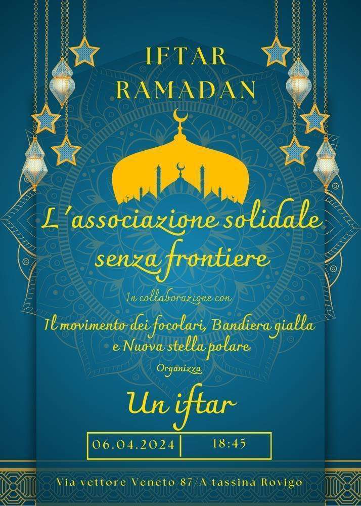 In collaborazione con il movimento dei focolari, Bandiera gialla e Nuova stella polare, L’Associazione solidale senza frontiere ha organizzato un iftar, per celebrare insieme la rottura del digiuno del Ramadan.