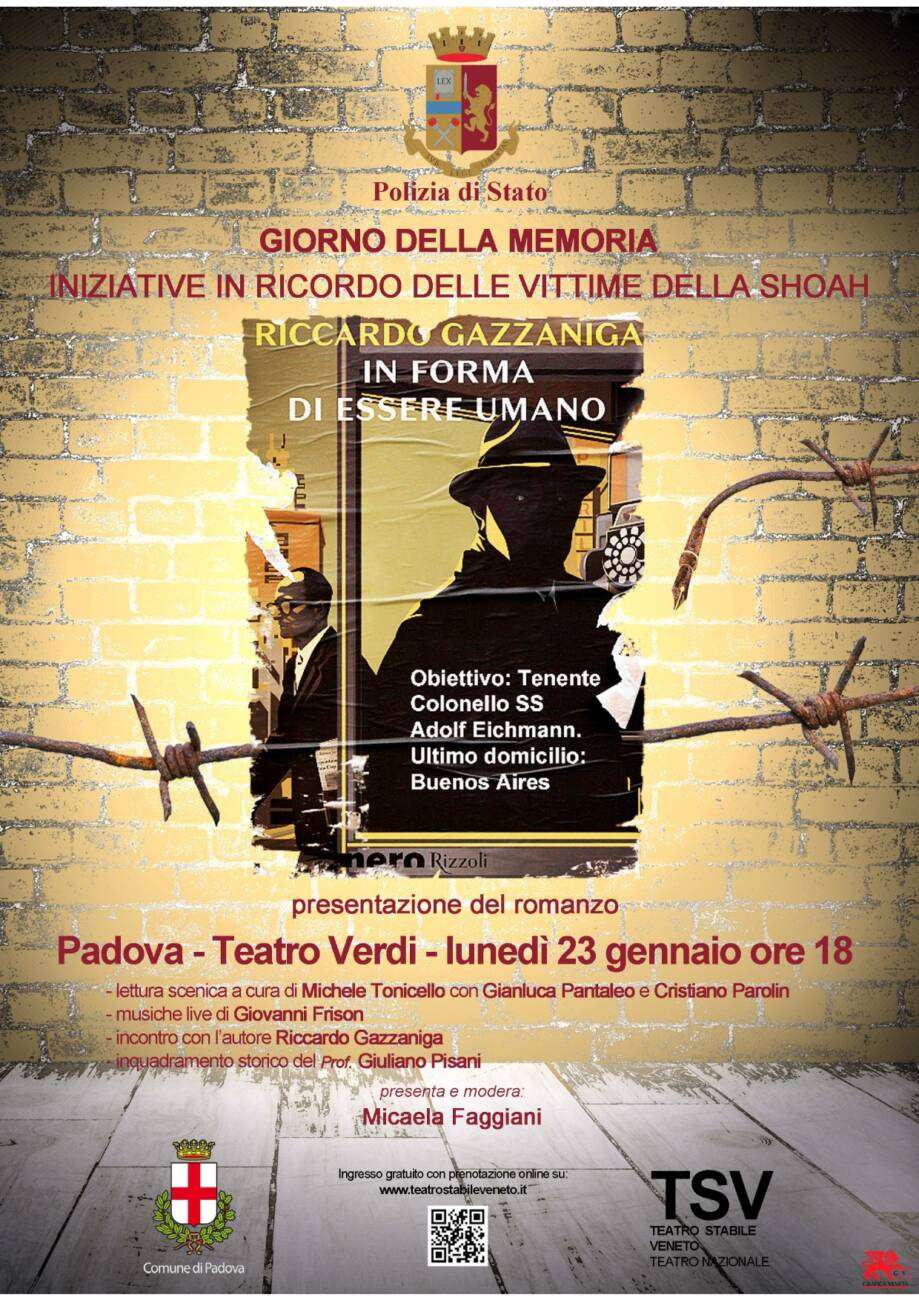 La Polizia di Stato, il Comune di Padova e il Teatro Stabile del Veneto promuovono “In forma di essere umano”, un incontro con l’autore Riccardo Gazzaniga. Si tratta di una lettura scenica a cura di Michele Tonicello con Gianluca Pantaleo e Cristiano Parolin, musiche live di Giovanni Frison e inquadramento storico del prof. Giuliano Pisani. Presenta e modera Micaela Faggiani.