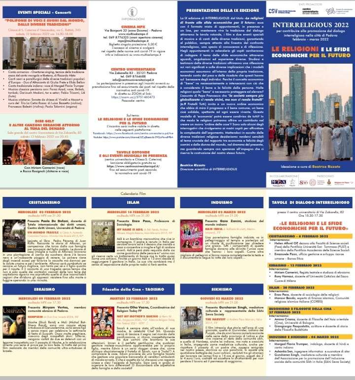 - Tavole di dialogo interreligioso: presso il centro universitario di Via Zabarella, 82 – ore 15.30-17.30 domenica 6 febbraio 2022