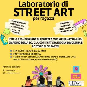 Art Flood è pronta ad accogliere bambini e ragazzi di Rovigo e dintorni nei nuovi laboratori estivi di street art promossi dall’associazione.