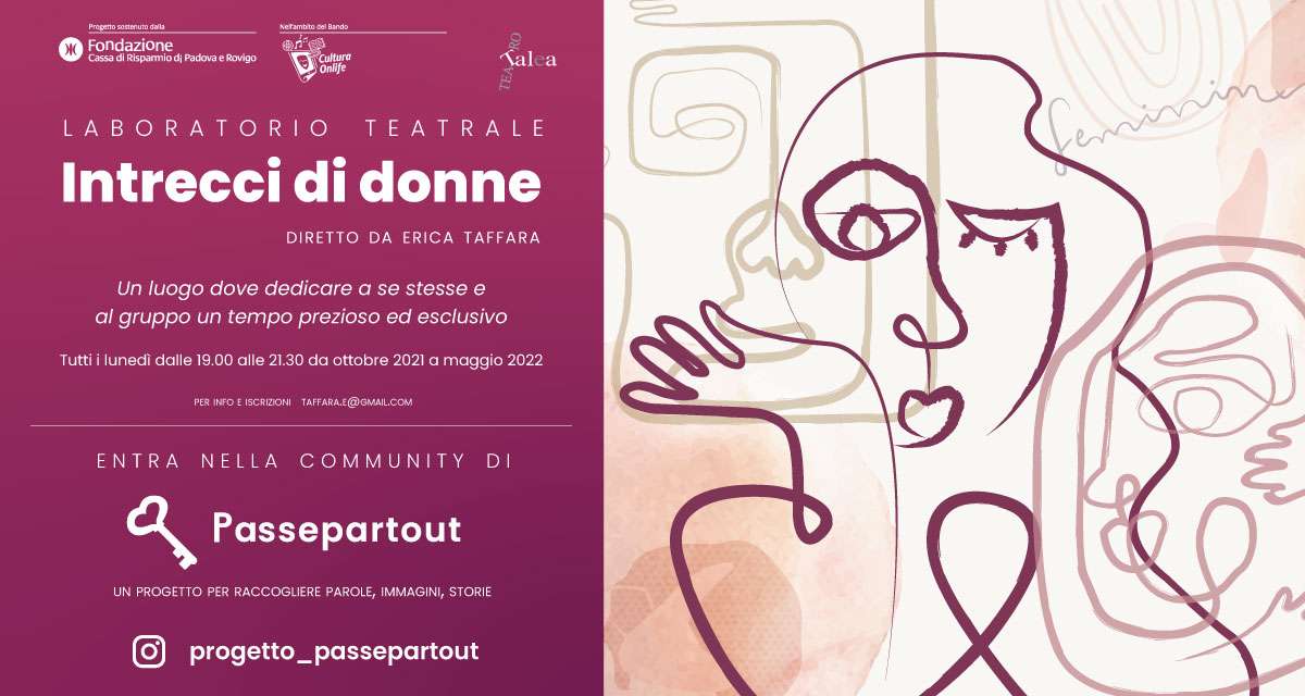 Il progetto si articola in due azioni principali. La prima, in presenza, prevede un laboratorio dal titolo Intrecci di Donne, uno spazio dedicato al femminile, in presenza, dove confrontarsi, conoscersi, raccontarsi, attraverso il teatro. La seconda azione invece si sviluppa in digitale sul sito web dedicato (www.taleateatro.eu) e su Instagram (@progetto_passepartout).