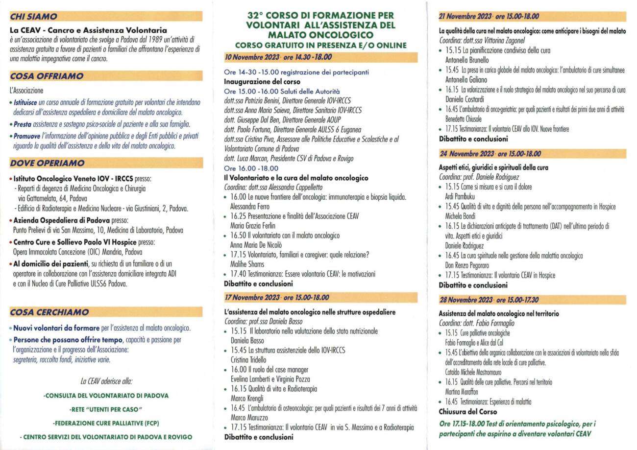 L’associazione CEAV quest’anno organizza il 32° Corso per l’assistenza volontaria al malato oncologico