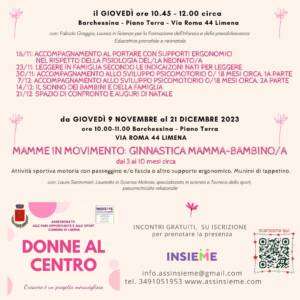 Associazione insieme propone un percorso di accompagnamento ai neo-genitori e degli incontri di ginnastica mamma-bambino/a