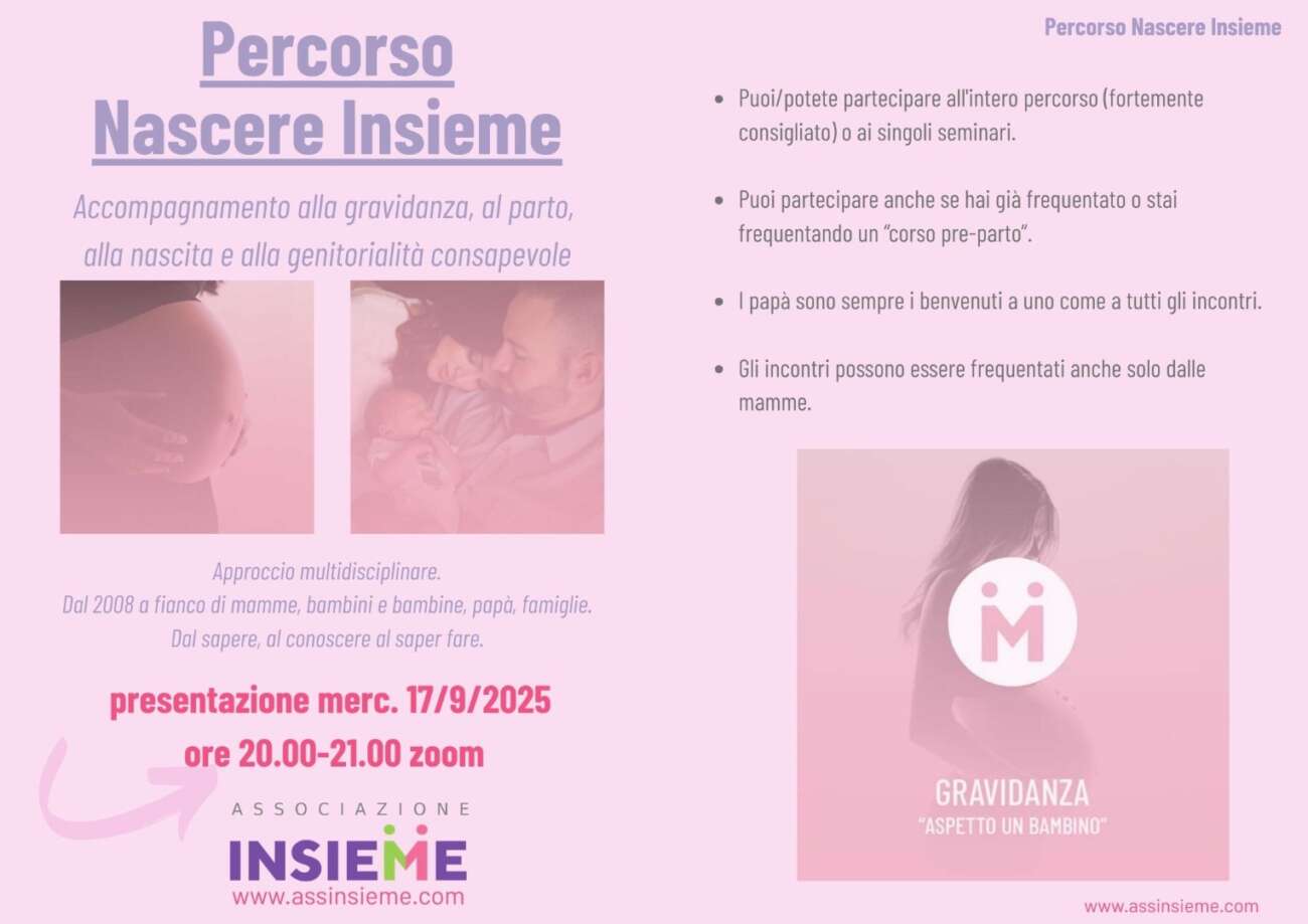 A ottobre 2025 prenderà avvio un nuovo gruppo del progetto Nascere Insieme. Gravidanza, parto e genitorialità consapevole, un percorso che va oltre la semplice preparazione al parto. L’associazione accompagna le famiglie dal pre-concepimento all’adolescenza, partendo dalla fisiologia ma affrontando anche gli imprevisti che possono verificarsi in gravidanza, durante il parto o nel periodo successivo.