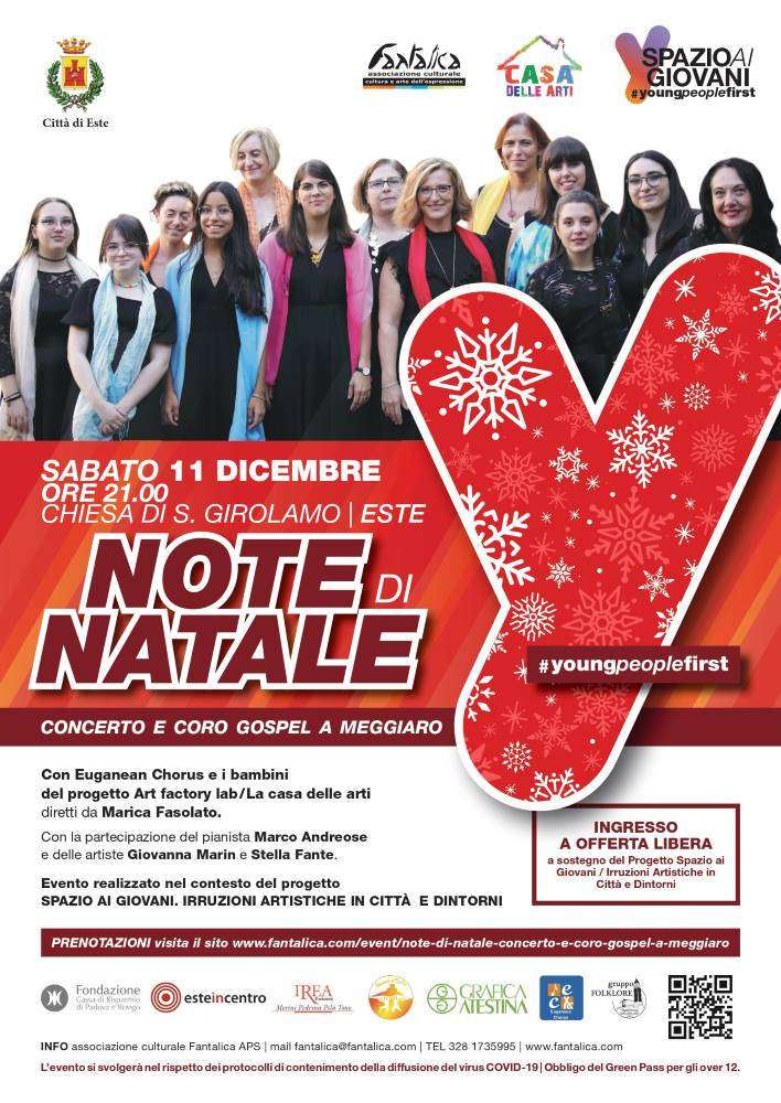 L’associazione culturale Fantalica APS con il Patrocinio del Comune di Este e con la collaborazione di Euganean Chorus e dei bambini del progetto Art factory lab-La casa delle arti diretti da Marica Fasolato, propone il concerto NOTE DI NATALE con la partecipazione del pianista Marco Andreose e il percussionista Daniele Pinato e delle artiste Giovanna Marin e Stella Fante.