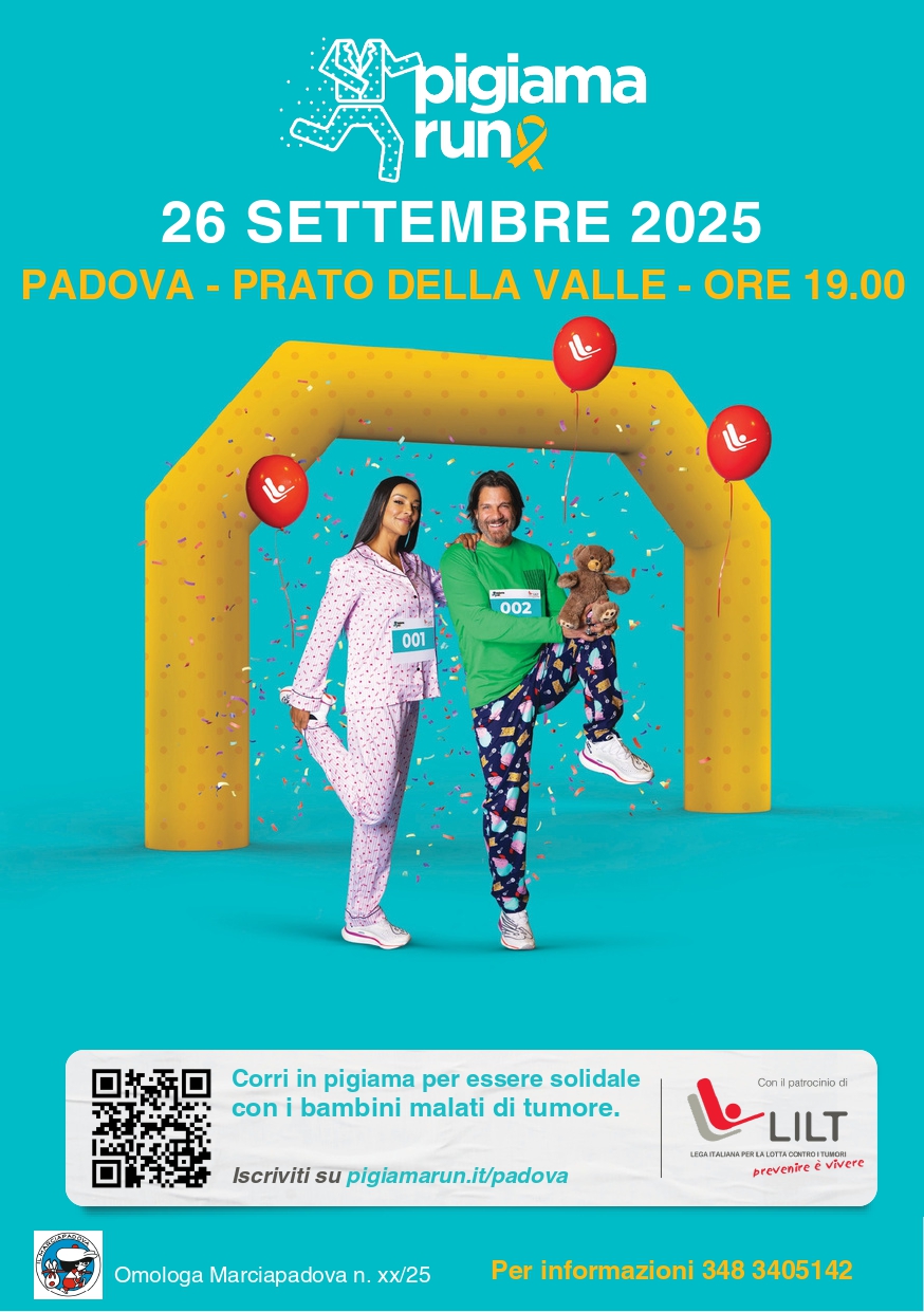 L’associazione LILT Padova invita alla Pigiama Run 2025 di Padova, un’occasione per correre o camminare insieme in maniera non competitiva per i bambini malati di tumore indossando il proprio pigiama.