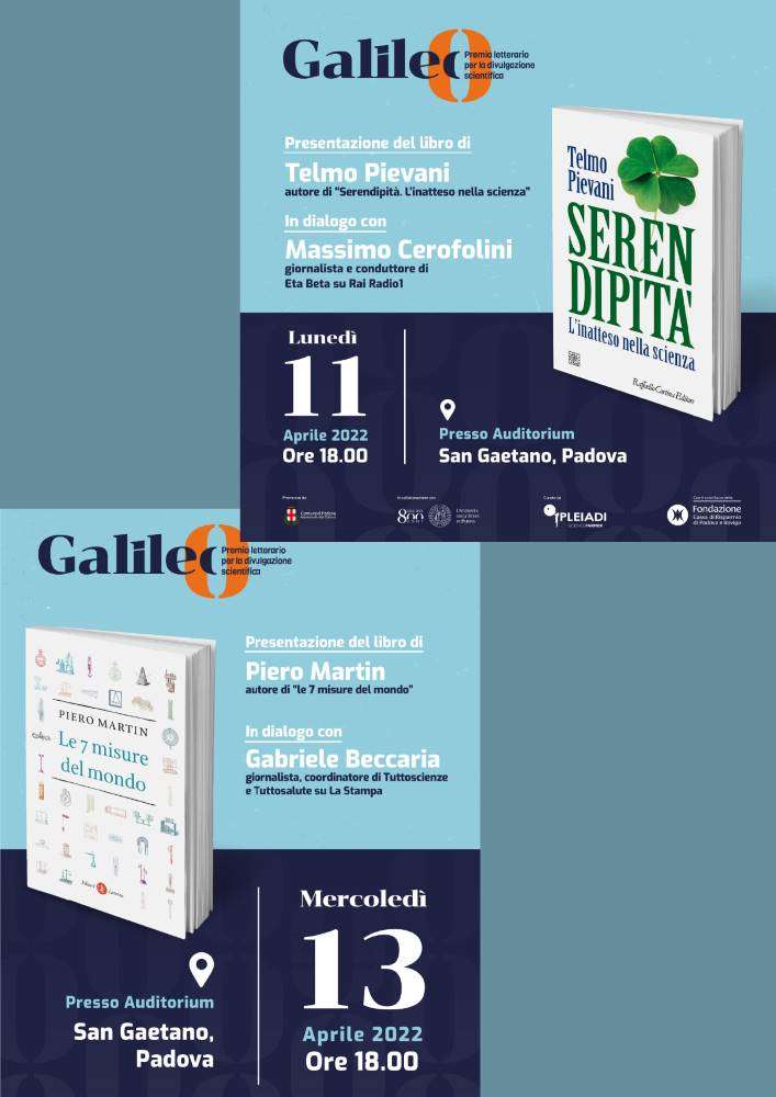 Il Premio letterario Galileo per la divulgazione scientifica, giunto nel 2022 alla XVI edizione, seleziona da oltre un decennio le migliori pubblicazioni di ambito scientifico edite in Italia nel biennio precedente e si inserisce in un composito programma di diffusione della cultura scientifica, che il Comune di Padova è intento a promuovere da anni insieme all’Università degli Studi di Padova, che sin dalla sua fondazione ha ospitato eccellenze nel campo scientifico, tra cui lo stesso Galileo Galilei.