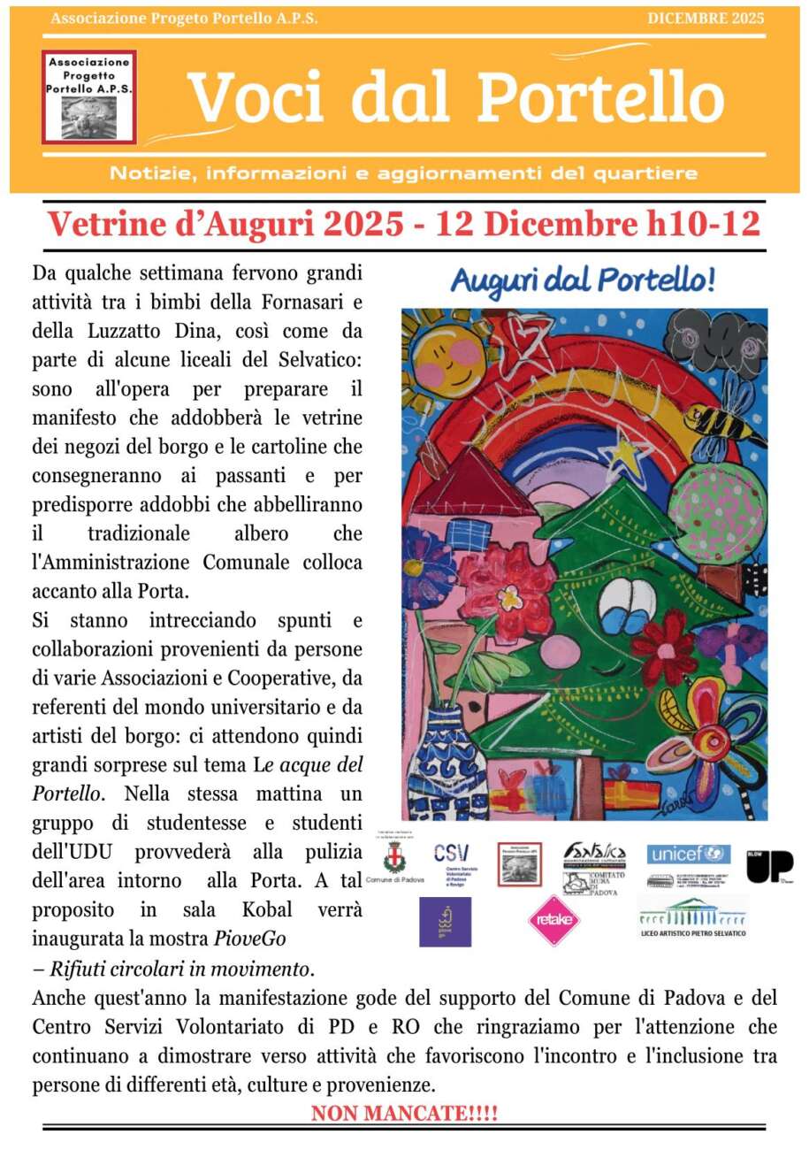 Nel quartiere Portello di Padova fervono i preparativi per uno degli appuntamenti più attesi dell’anno: “Vetrine d’Auguri 2025”, in programma venerdì 12 dicembre dalle 10 alle 12.