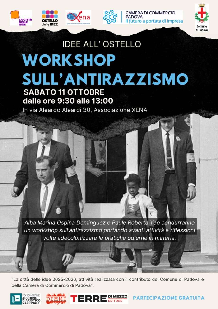L’11 ottobre dalle ore 9.30 alle 13 presso la sede dell’associazione Xena, Alba Marina Ospina Dominguez e Paule Roberta Yao condurranno un workshop sull’antirazzismo e contrasto al razzismo inconsapevole, portando avanti attività e riflessioni volte a decolonizzare le pratiche odierne in materia.